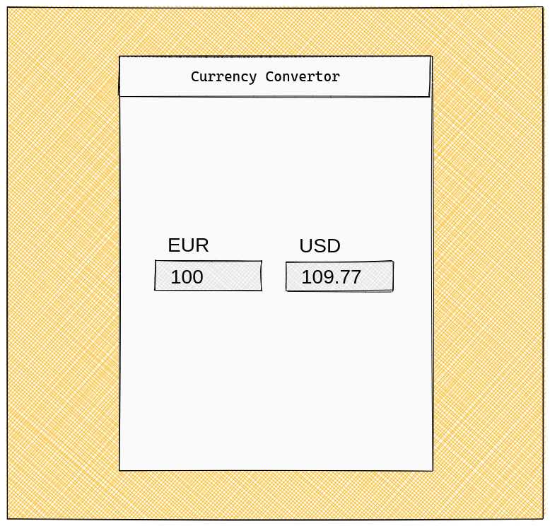 This article was written during the worldwide COVID-19 pandemic. Since many people have to stay at home right now, we can as well try to learn something new. So join me in building an app, starting from zero. Let’s build a currency convertor. Although that may not be the most original idea, and not the next billion dollar thing, it’s a nice project for Getting Started with app development. To see why, we’ll first have a look at a rough wireframe of what we want to achieve.